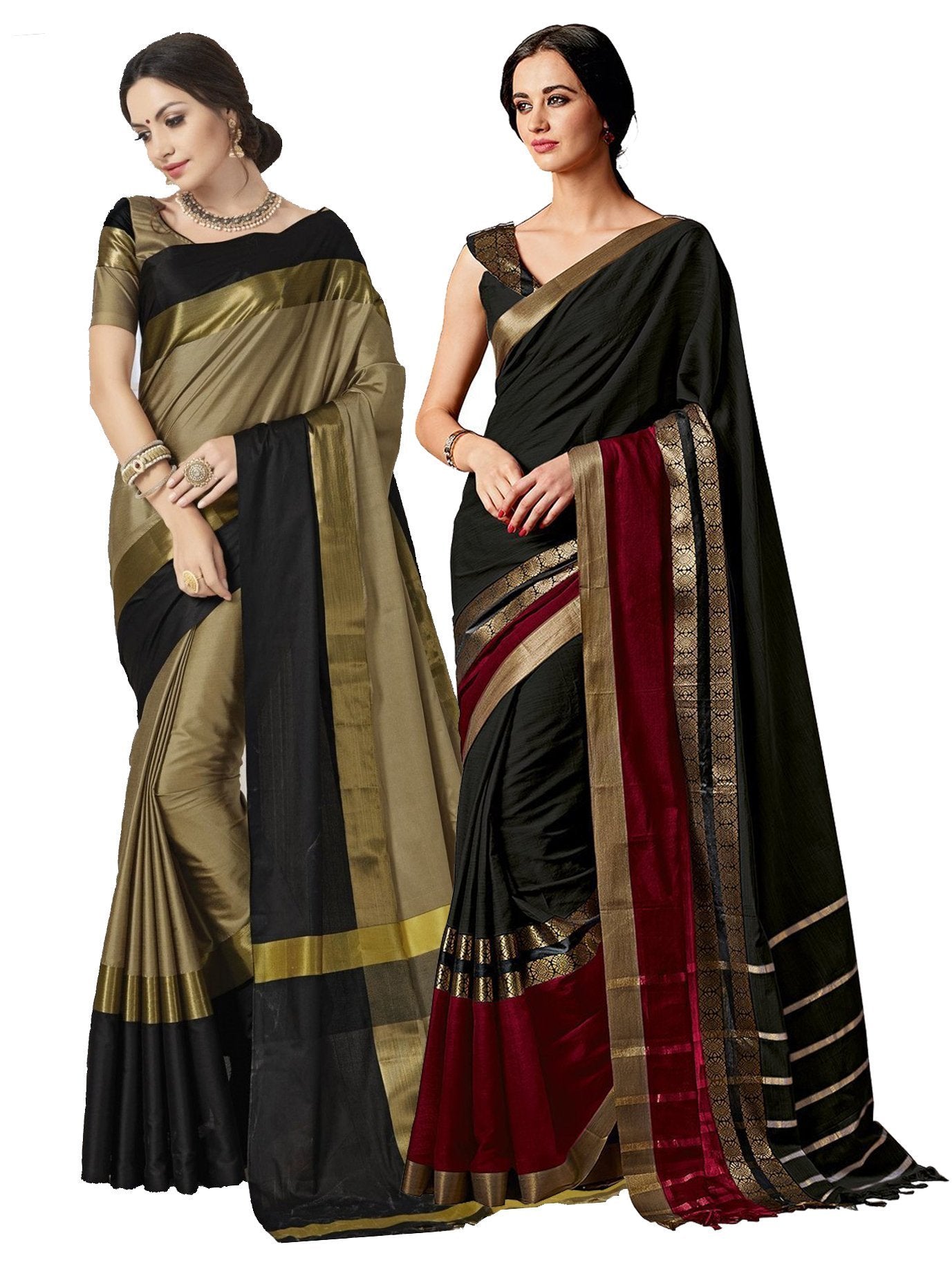 - Saree 1 Colour:- Grey ,, Saree 2 Colour:- Black