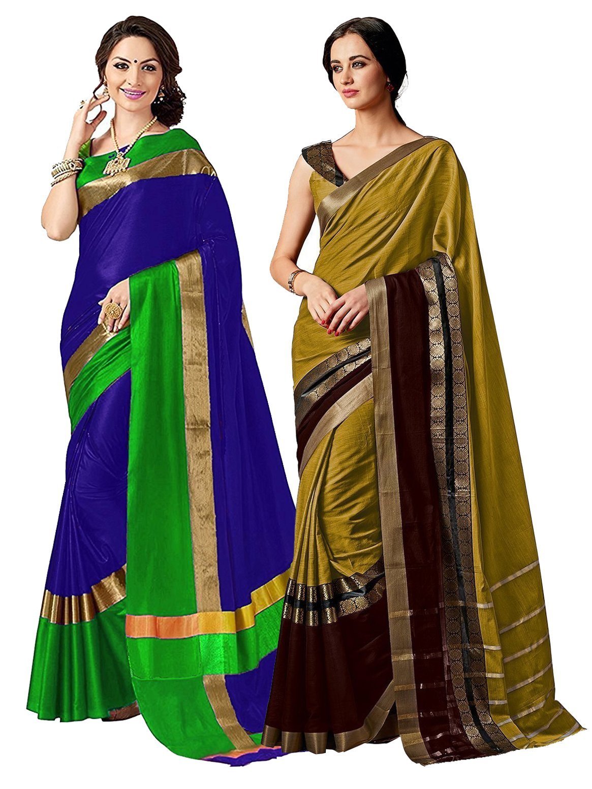 • Saree 1 Colour:- Navy Blue ,, Saree 2 Colour:- Olive Green'