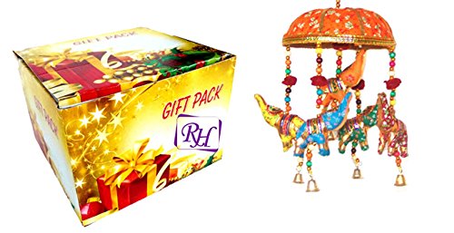 Indian Traditional Elephant Orange Umbrella Hanging Layer Of Five Elephant Door Hanging, Decorative Hanging