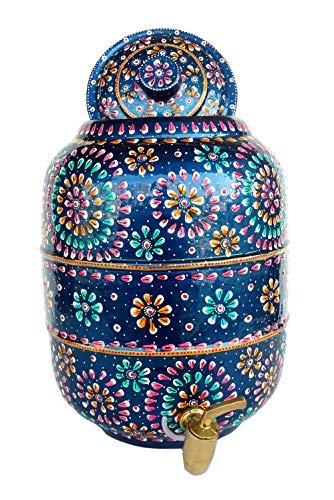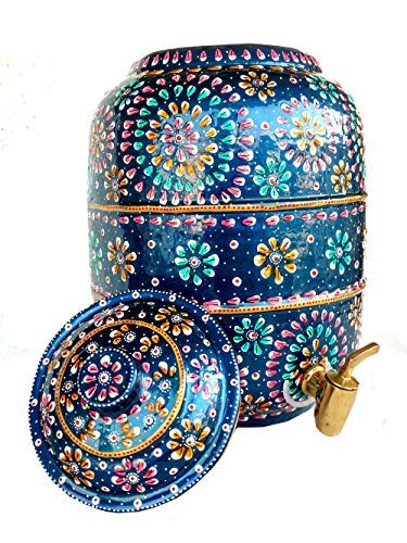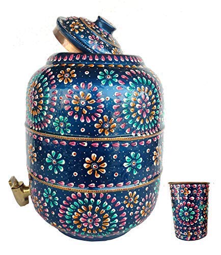 Rastogi Handicrafts pure copper Hammered water storage pot 6.5 liter capacity outer side water proof Hand painted with free tumbler