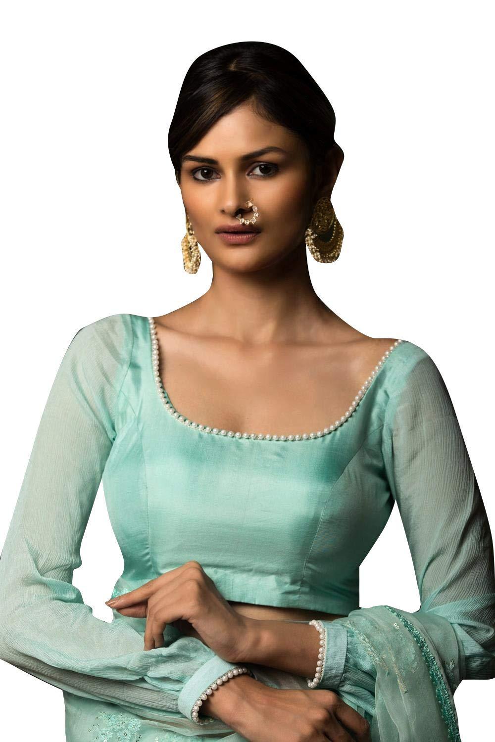 Readymade Designer Indian Style Padded Blouse - Turquoise