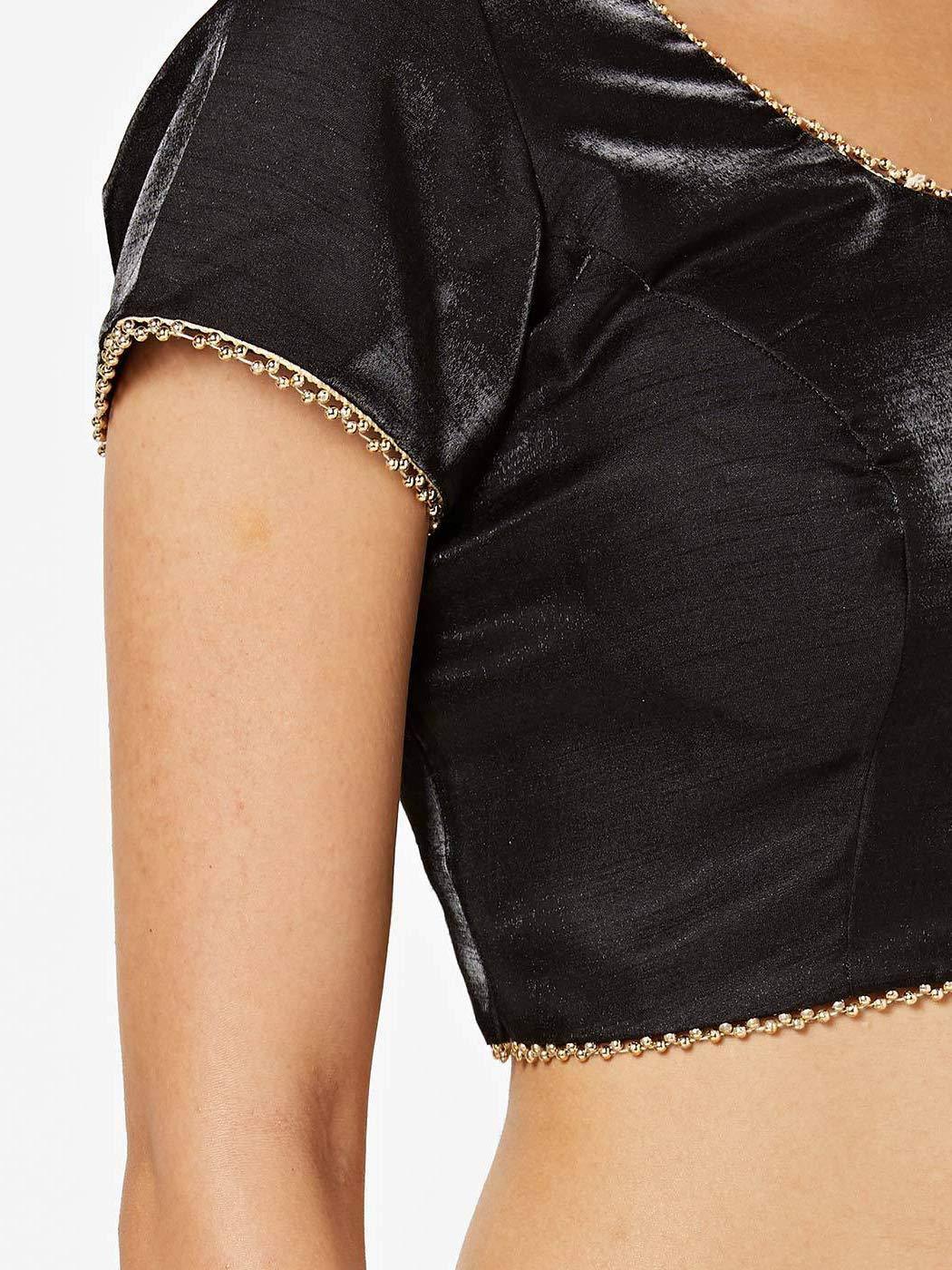 Details: This is a readymade blouse/choli of art silk fabric. This is a Fancy blouse which can go with any party wear saree or lehenga. It is a non-padded blouse with styling as shown in the picture, comes with an added allowance of up to 2 inches for any alteration required. It's chic yet a reasonable blouse with a simple yet elegant neckline.