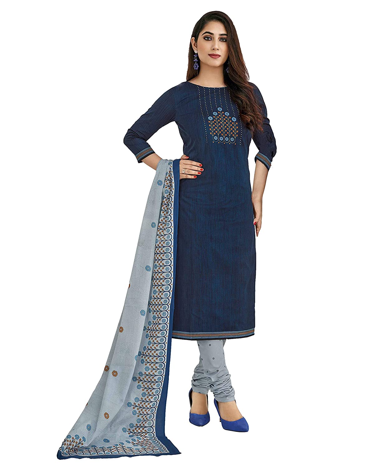 Women's Cotton Unstitched Dress Material (Blue, Free Size)